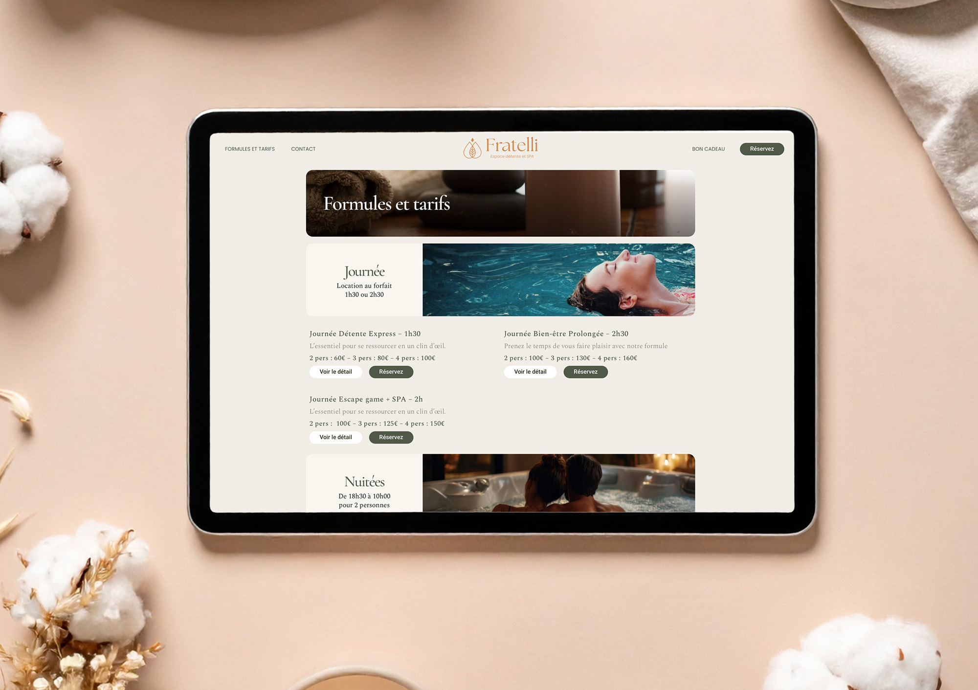 L’identité visuelle a été pensé autour de l’harmonie et la douceur dans un cadre élégant. Afin de mettre en évidence la nuitée, une étoile vient souligner cette évasion romantique.